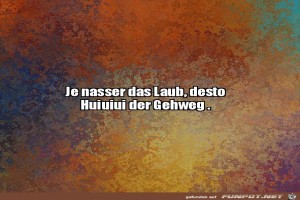 | Nasses Laub Bild (142.5 KB) 5Lustiges → klasse Sprüche und Witze | Lustiges → klasse Sprüche und Witze | 07.11.21-09:17 | ||