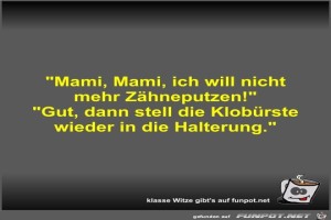 | "Mami, Mami, ich will nicht mehr Zähneputzen!" Bild (27.05 KB) 6Lustiges → klasse Sprüche und Witze | Lustiges → klasse Sprüche und Witze | 06.11.21-11:17 | Fossy | |