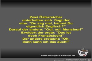 | Zwei Österreicher unterhalten sich Bild (36 KB) 7Lustiges → klasse Sprüche und Witze | Lustiges → klasse Sprüche und Witze | 29.10.21-13:38 | Fossy | |