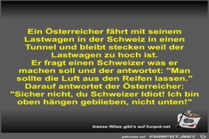 | Ein Österreicher fährt mit seinem Lastwagen in der Schweiz Bild (54.03 KB) 7Lustiges → klasse Sprüche und Witze | Lustiges → klasse Sprüche und Witze | 28.10.21-08:02 | Fossy | |