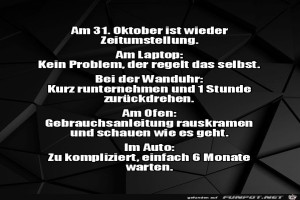 | Uhren umstellen Bild (91.11 KB) 26Lustiges → klasse Sprüche und Witze | Lustiges → klasse Sprüche und Witze | 27.10.21-21:47 | Lasse | |