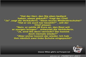 | Hat der Herr, den Sie eben bedient haben, etwas gekauft? Bild (40.45 KB) 10Lustiges → klasse Sprüche und Witze | Lustiges → klasse Sprüche und Witze | 29.10.21-08:01 | Fossy | |