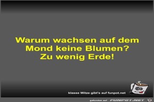 | Warum wachsen auf dem Mond keine Blumen? Bild (22.26 KB) 7Lustiges → klasse Sprüche und Witze | Lustiges → klasse Sprüche und Witze | 26.10.21-08:05 | Fossy | |