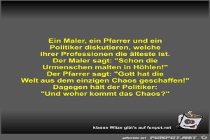 | Ein Maler, ein Pfarrer und ein Politiker diskutieren,... Bild (40.6 KB) 6Lustiges → klasse Sprüche und Witze | Lustiges → klasse Sprüche und Witze | 20.10.21-08:04 | Fossy | |