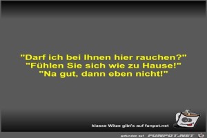 | Darf ich bei Ihnen hier rauchen? Bild (22.72 KB) 7Lustiges → klasse Sprüche und Witze | Lustiges → klasse Sprüche und Witze | 12.10.21-11:32 | Fossy | |