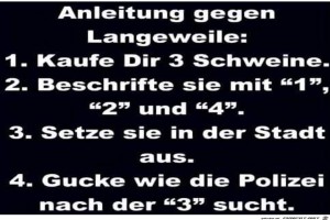 | Gegen Langeweile Bild (84.08 KB) 6Lustiges → klasse Sprüche und Witze | Lustiges → klasse Sprüche und Witze | 13.10.21-07:11 | ||