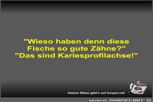 | Wieso haben denn diese Fische so gute Zähne? Bild (23.41 KB) 8Lustiges → klasse Sprüche und Witze | Lustiges → klasse Sprüche und Witze | 07.10.21-08:21 | Fossy | |