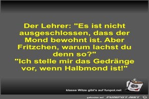 | Der Lehrer: Es ist nicht ausgeschlossen Bild (38.82 KB) 8Lustiges → klasse Sprüche und Witze | Lustiges → klasse Sprüche und Witze | 06.10.21-08:01 | Fossy | |