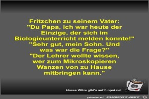 | Fritzchen zu seinem Vater Bild (41.69 KB) 7Lustiges → klasse Sprüche und Witze | Lustiges → klasse Sprüche und Witze | 06.10.21-13:36 | Fossy | |