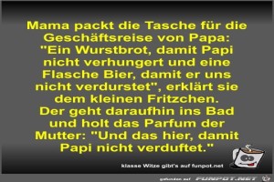| Mama packt die Tasche für die Geschäftsreise von Papa Bild (57.22 KB) 7Lustiges → klasse Sprüche und Witze | Lustiges → klasse Sprüche und Witze | 06.10.21-17:18 | Fossy | |