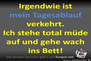 | Mein Tagesablauf Bild (81.71 KB) 13Lustiges → klasse Sprüche und Witze Leider trifft diese Aussage auf mich zu. Wobei ich schnell einschlafe, aber leider nie durch! | Lustiges → klasse Sprüche und Witze | 06.10.21-10:01 | Fossy | |