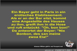 | Ein Bayer geht in Paris in ein erotisches Etablissement Bild (43.33 KB) 8Lustiges → klasse Sprüche und Witze | Lustiges → klasse Sprüche und Witze | 15.09.21-12:15 | Fossy | |