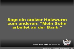 | Sagt ein stolzer Holzwurm zum anderen Bild (24.56 KB) 5Lustiges → klasse Sprüche und Witze | Lustiges → klasse Sprüche und Witze | 15.09.21-08:00 | Fossy | |