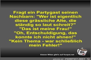 | Fragt ein Partygast seinen Nachbarn Bild (46.6 KB) 11Lustiges → klasse Sprüche und Witze | Lustiges → klasse Sprüche und Witze | 14.09.21-08:00 | Fossy | |
