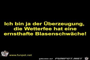 | Die Wetterfee Bild (22.24 KB) 20Lustiges → klasse Sprüche und Witze Durch den funpot-Bildgenerator eingestellt. | Lustiges → klasse Sprüche und Witze | 26.08.21-17:01 | ||