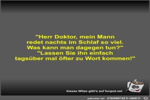| Herr Doktor, mein Mann redet nachts im Schlaf so viel Bild (27.05 KB) 9Lustiges → klasse Sprüche und Witze | Lustiges → klasse Sprüche und Witze | 27.08.21-08:00 | Fossy | |