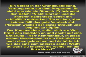 | Ein Soldat in der Grundausbildung Bild (86.17 KB) 7Lustiges → klasse Sprüche und Witze | Lustiges → klasse Sprüche und Witze | 27.08.21-14:18 | Fossy | |