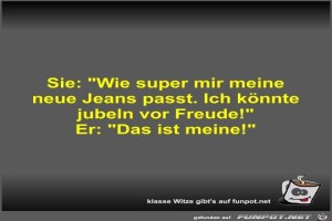 | Sie: Wie super mir meine neue Jeans passt Bild (25.76 KB) 10Lustiges → klasse Sprüche und Witze | Lustiges → klasse Sprüche und Witze | 26.08.21-13:41 | Fossy | |