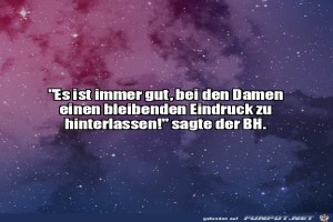 | Bleibender Eindruck Bild (82.71 KB) 2Lustiges → klasse Sprüche und Witze | Lustiges → klasse Sprüche und Witze | 25.08.21-08:38 | Marleen | |