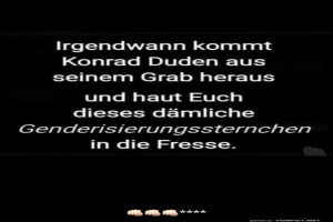| Konrad Duden und das Gendersternchen Bild (60.06 KB) 4Lustiges → klasse Sprüche und Witze | Lustiges → klasse Sprüche und Witze | 09.05.-07:52 | ||