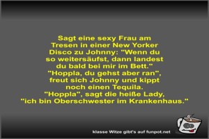 | Sagt eine sexy Frau am Tresen in einer New Yorker Disco zu Bild (38.15 KB) 1Lustiges → klasse Sprüche und Witze | Lustiges → klasse Sprüche und Witze | 08.05.-17:39 | Fossy | |