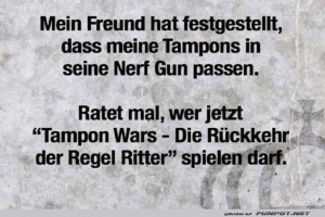 | Tampon Wars: Die Rückkehr der Regel Ritter Bild (106.15 KB) 1Lustiges → klasse Sprüche und Witze | Lustiges → klasse Sprüche und Witze | 08.05.-15:07 | ||