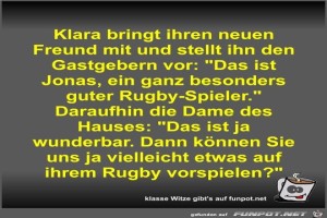 | Klara bringt ihren neuen Freund mit und stellt ihn den... Bild (53.63 KB) 7Lustiges → klasse Sprüche und Witze | Lustiges → klasse Sprüche und Witze | 15.08.21-15:15 | Fossy | |