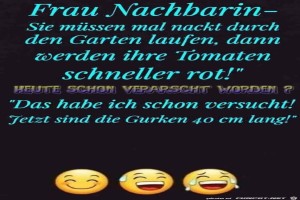 | Frau Nachbarin Bild (72.4 KB) 16Lustiges → klasse Sprüche und Witze | Lustiges → klasse Sprüche und Witze | 13.08.21-07:22 | Keule56 | |