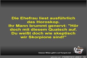 | Die Ehefrau liest ausführlich das Horoskop Bild (35.09 KB) 6Lustiges → klasse Sprüche und Witze | Lustiges → klasse Sprüche und Witze | 14.08.21-10:52 | Fossy | |