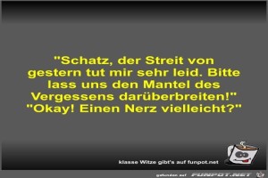 | Schatz, der Streit von gestern tut mir sehr leid Bild (32.32 KB) 12Lustiges → klasse Sprüche und Witze | Lustiges → klasse Sprüche und Witze | 14.08.21-08:01 | Fossy | |