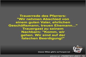 | Trauerrede des Pfarrers Bild (36.1 KB) 10Lustiges → klasse Sprüche und Witze | Lustiges → klasse Sprüche und Witze | 07.08.21-11:30 | Fossy | |