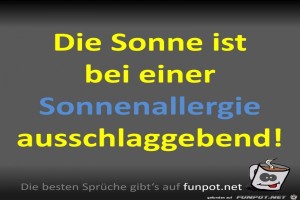 | Sonnenallergie Bild (64.9 KB) 13Lustiges → klasse Sprüche und Witze Das ist richtig. Sonnenallergie geht mit einem fiesen Ausschlag einher ;-) | Lustiges → klasse Sprüche und Witze | 05.08.21-17:01 | ||