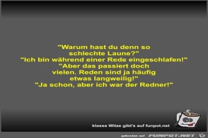 | Warum hast du denn so schlechte Laune? Bild (28.42 KB) 8Lustiges → klasse Sprüche und Witze | Lustiges → klasse Sprüche und Witze | 06.08.21-12:20 | Fossy | |