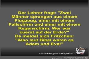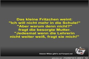 | Der Lehrer fragt Fritzchen Bild (24.14 KB) 4Lustiges → klasse Sprüche und Witze | Lustiges → klasse Sprüche und Witze | 01.08.21-10:56 | Fossy | |