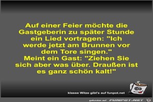 | Auf einer Feier möchte die Gastgeberin zu später Stunde ein Bild (42.67 KB) 7Lustiges → klasse Sprüche und Witze | Lustiges → klasse Sprüche und Witze | 25.07.21-11:31 | Fossy | |