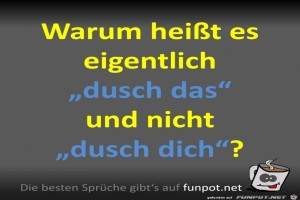 | Dusch dich Bild (59.8 KB) 13Lustiges → klasse Sprüche und Witze Das ist doch eine berechtigte Frage. Für manche Leute wäre das durchaus wichtig, dass man ihnen sagt, dass sie sich duschen sollen ;-) | Lustiges → klasse Sprüche und Witze | 26.07.21-10:35 | Fossy | |