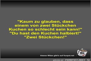 | Kaum zu glauben, dass einem von zwei Stückchen Kuchen so... Bild (30.28 KB) 7Lustiges → klasse Sprüche und Witze | Lustiges → klasse Sprüche und Witze | 24.07.21-10:48 | Fossy | |