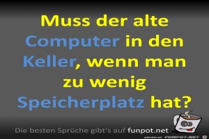 | Zu wenig Speicherplatz Bild (68.1 KB) 11Lustiges → klasse Sprüche und Witze Wenn der Speicher voll ist, bleibt wohl nur noch Platz im Keller ;-) | Lustiges → klasse Sprüche und Witze | 26.07.21-10:34 | ||