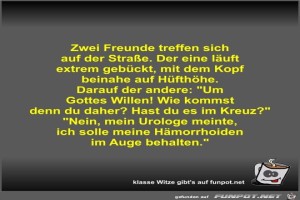 | Zwei Freunde treffen sich auf der Straße Bild (42.39 KB) 9Lustiges → klasse Sprüche und Witze | Lustiges → klasse Sprüche und Witze | 23.07.21-14:10 | Fossy | |