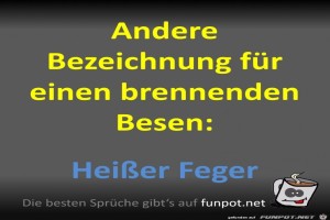 | Brennender Besen Bild (65.86 KB) 7Lustiges → klasse Sprüche und Witze Heißer Feger hört sich auf jeden Fall viel besser an als brennender Besen ;-) | Lustiges → klasse Sprüche und Witze | 20.07.21-09:16 | Fossy | |