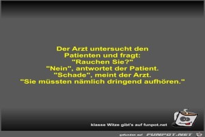 | Der Arzt untersucht den Patienten und fragt Bild (25.89 KB) 6Lustiges → klasse Sprüche und Witze | Lustiges → klasse Sprüche und Witze | 18.07.21-08:05 | Fossy | |