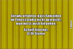 | Erkenntnis über Fitnessstudio-Anmeldungen Bild (199.18 KB) 9Lustiges → klasse Sprüche und Witze | Lustiges → klasse Sprüche und Witze | 06.05.-10:26 | ||