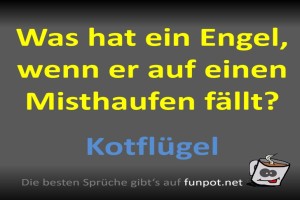 | Witz über Engel und Misthaufen Bild (71.37 KB) 7Lustiges → klasse Sprüche und Witze Dann hoffen wir mal inständig für den Engel, dass er nie in einen Misthaufen fällt :-) | Lustiges → klasse Sprüche und Witze | 06.05.-08:29 | ||