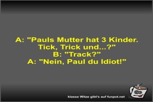 | A: Pauls Mutter hat 3 Kinder Bild (22.9 KB) 2Lustiges → klasse Sprüche und Witze | Lustiges → klasse Sprüche und Witze | 06.05.-10:49 | Fossy | |