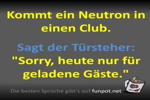 | Physik-Witz über Neutronen und Clubs Bild (75.15 KB) 5Lustiges → klasse Sprüche und Witze Das ist natürlich ein herber Schlag für das Neutron ;-) | Lustiges → klasse Sprüche und Witze | 06.05.-08:29 | Fossy | |