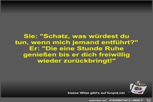 | Sie: Schatz, was würdest du tun, wenn mich jemand entführt? Bild (30.02 KB) 10Lustiges → klasse Sprüche und Witze | Lustiges → klasse Sprüche und Witze | 16.07.21-17:05 | Fossy | |