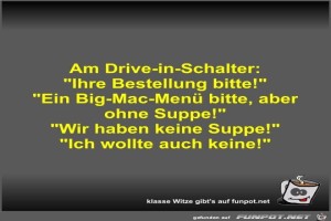 | Am Drive-in-Schalter Bild (33.58 KB) 6Lustiges → klasse Sprüche und Witze | Lustiges → klasse Sprüche und Witze | 16.07.21-13:10 | Fossy | |