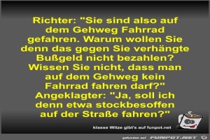 | Richter: Sie sind also auf dem Gehweg Fahrrad gefahren Bild (55.54 KB) 5Lustiges → klasse Sprüche und Witze | Lustiges → klasse Sprüche und Witze | 15.07.21-11:29 | Fossy | |