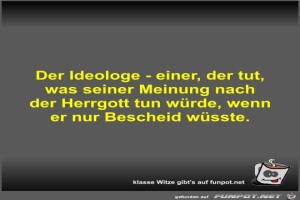 | Der Ideologe - einer, der tut, was seiner Meinung nach der Bild (27.88 KB) 7Lustiges → klasse Sprüche und Witze | Lustiges → klasse Sprüche und Witze | 14.07.21-13:21 | Fossy | |