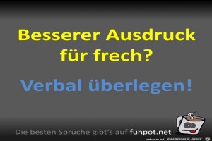 | Verbal überlegen Bild (52.89 KB) 13Lustiges → klasse Sprüche und Witze Verbal überlegen hört sich doch klasse an. Das muss ich mir merken, wenn mein Frauchen mal wieder sagt, ich wäre zu frech ;-) | Lustiges → klasse Sprüche und Witze | 14.07.21-10:30 | ||